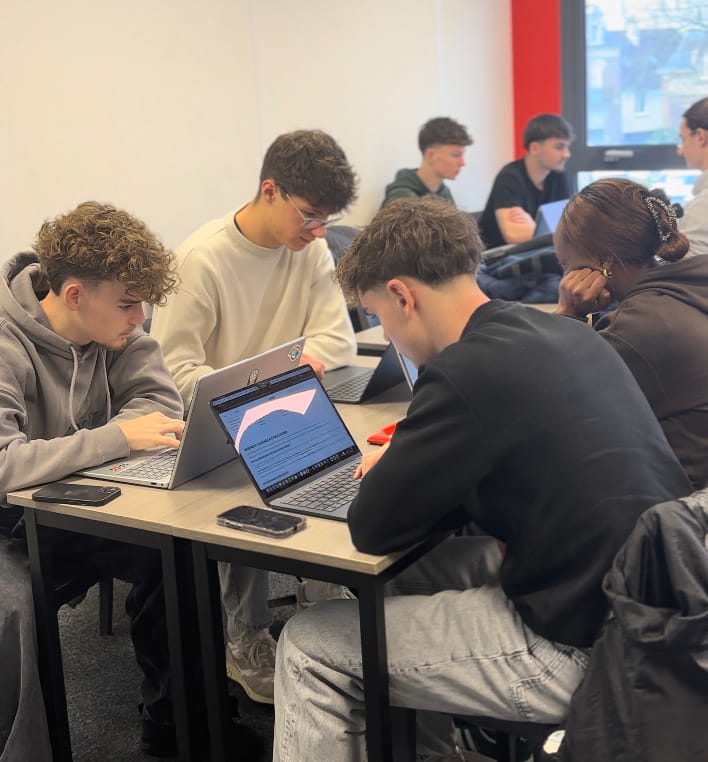 Cette rencontre entre étudiants venus d’horizons différents crée une dynamique particulière. Les groupes se forment naturellement autour de projets communs, chacun apportant ses idées, sa manière de travailler et son regard sur les défis proposés. C’est aussi l’occasion de développer des compétences essentielles dans le monde professionnel : collaboration, communication et créativité.