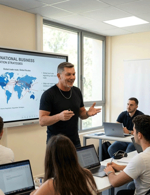 Un exemple très parlant : les étudiants travaillent sur des simulations de développement d’entreprise à l’international. Par exemple, ils peuvent être amenés à lancer une entreprise française sur un marché étranger en tenant compte des contraintes culturelles, réglementaires et commerciales.